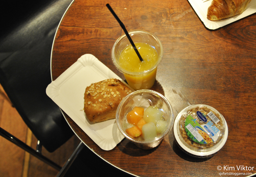 En lätt frukost i cafeterian, utbudet var väl ingen höjdare, men något ätbart hittade jag! Vi kände inte för att betala 150 SEK för en frukost i buffén.