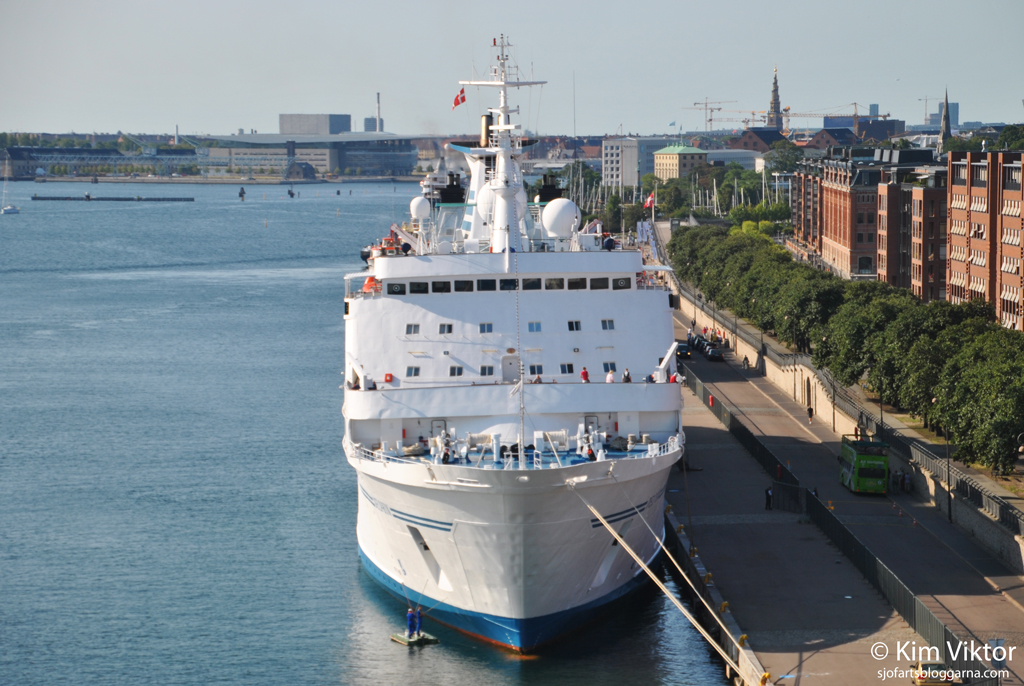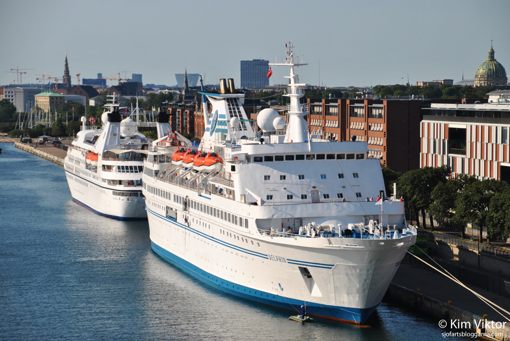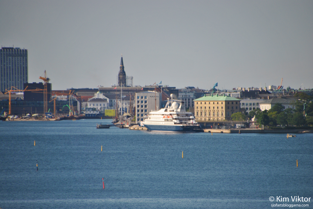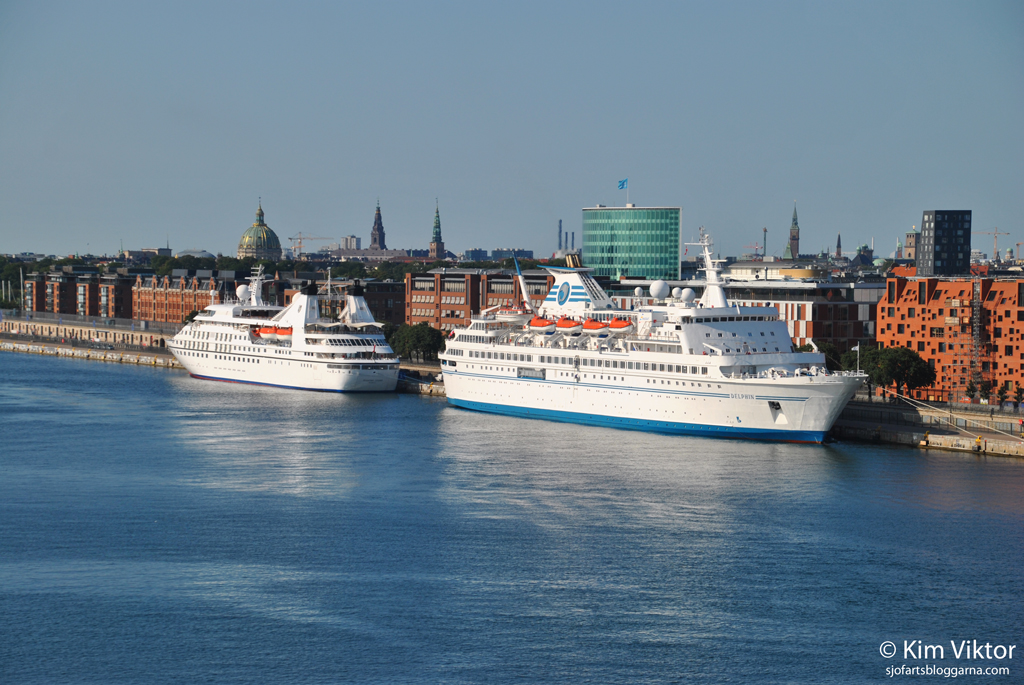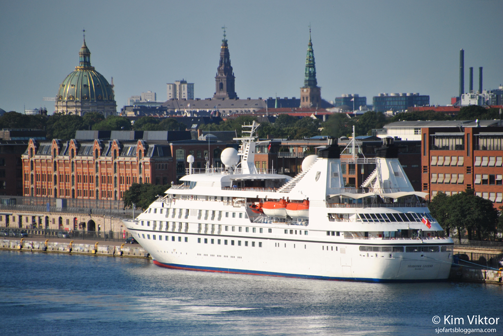 Och bredvid henne Seabourn Legend. Nästa år när hon kommer till Skandinavien är det under namnet Star Legend (eftersom hon är såld till Windstar cruises).