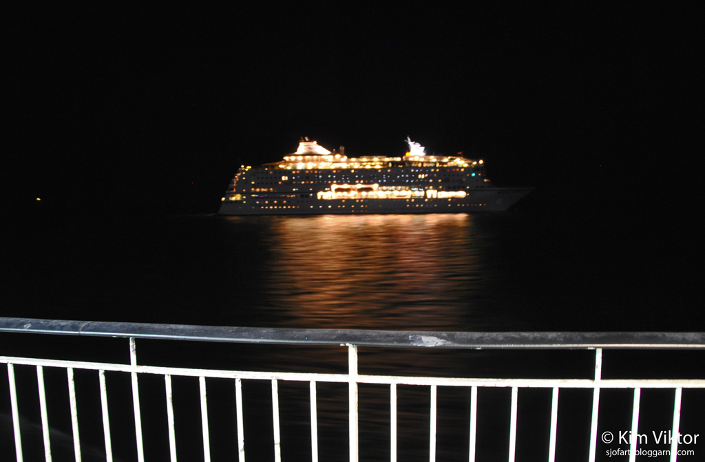Jag avslutar med en bild på Romantika utanför Frihamnspiren. Vi la till i tid och ett 50-tal passagerare gick av via landgångarna…