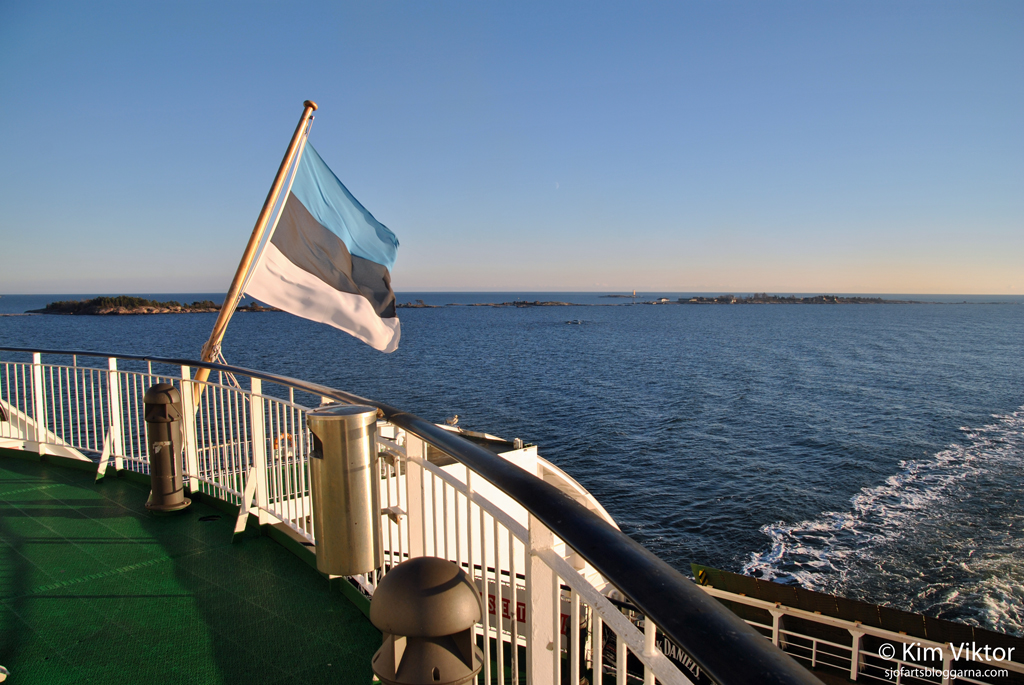 Jag går ut på däck för att beskåda inseglingen till Tallinn.