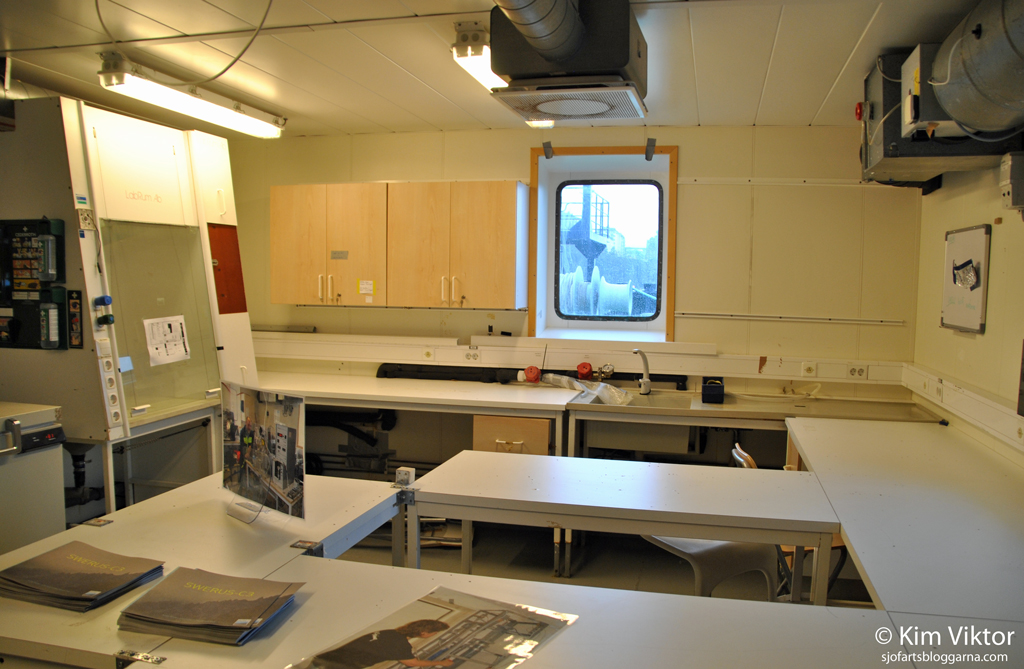 Inne på forskarlaboratoriet, totalt kan det arbeta upp till 60 forskare ombord.