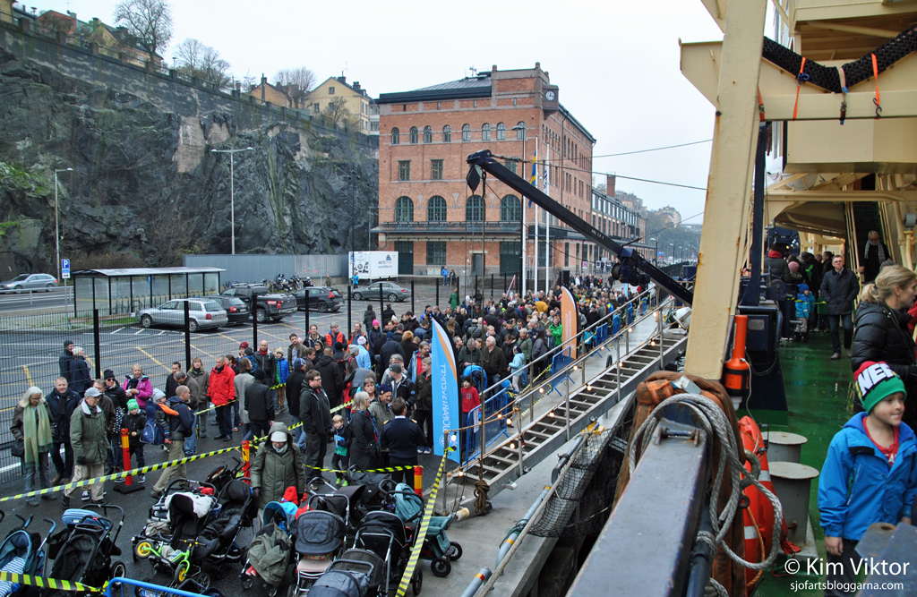40 minuter senare hade man tagit svängen runt fartyget. Kön ringlande fortfarande långt bort mot fotografiska. Det var visst hela 2828 besökare ombord denna dag, ingen dålig siffra. Tack till Sjöfartsverket för ett väl genomfört evenemang!