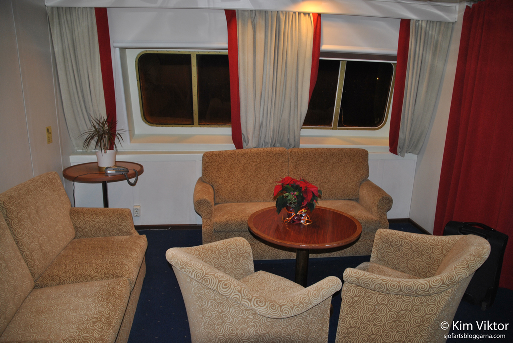 Kryssningen ägde rum under andra adventshelgen. Vi hade bokat en av de fyra lyxhytterna ombord, 8003 på styrbordssida.