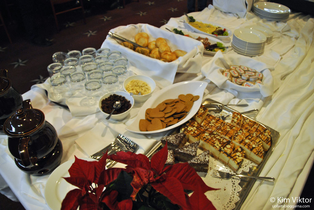 Kvällen till ära bjöd de på ”julbord” i restaurang Vivaldi. Utbudet var något tamt, men 4 kalla rätter och 5 varma. Men men maten ingick ju i priset, så man kan väl inte klaga allt för mycket. 😉