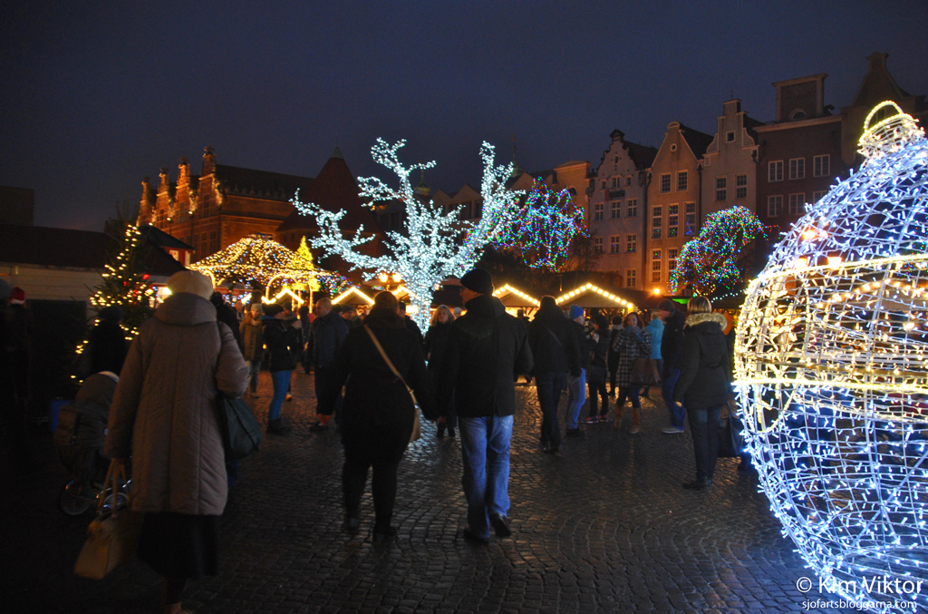 I Gdansk har de en nu mysig julmarknad med vacker belysning.