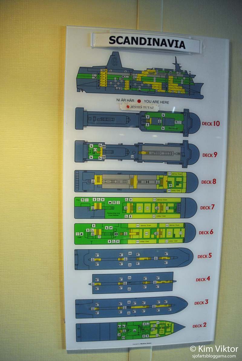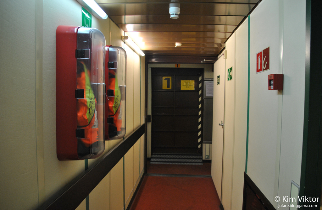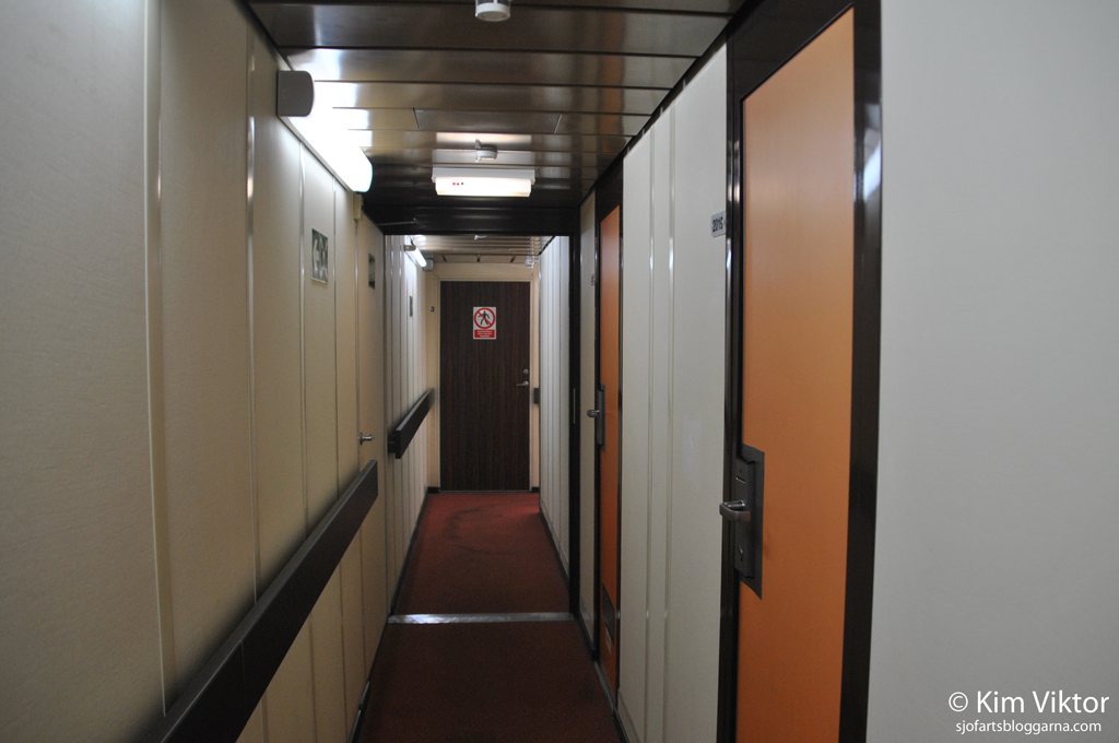 Hytterna är placerade i olika avdelningar med vattentätadörrar emellan. Lite jobbigt om man har hytten långt från wc, då måste gå upp och ner för trapporna för att komma till rätt avdelning.