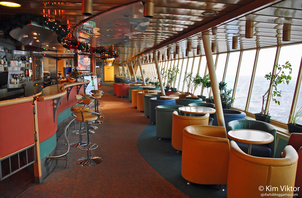 Högst upp på däck 10 ligger panoramabaren. Tycka vad man vill om färgsättningen, men det är inte sterilt i alla fall.