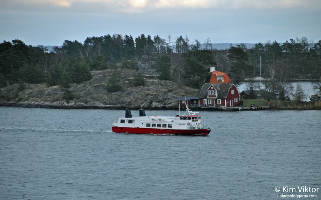 Skärgårdsbåten Madam på väg in mot julmarknaden i Nynäshamn.