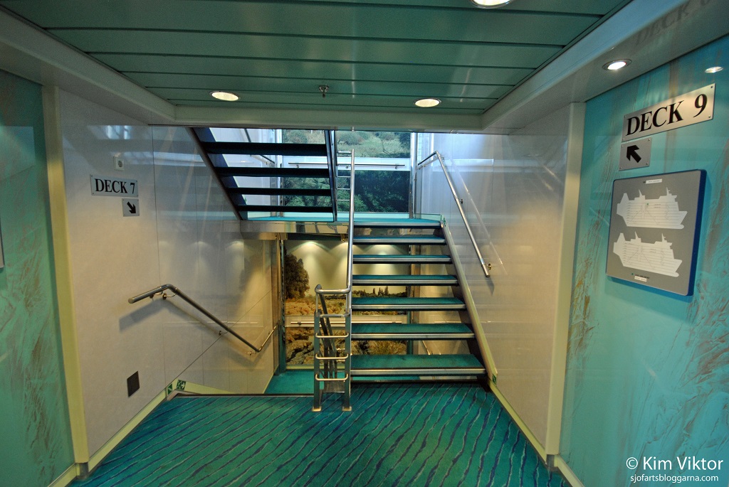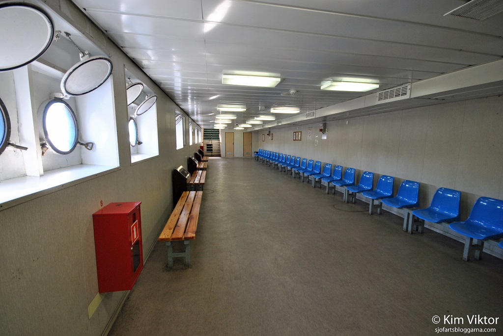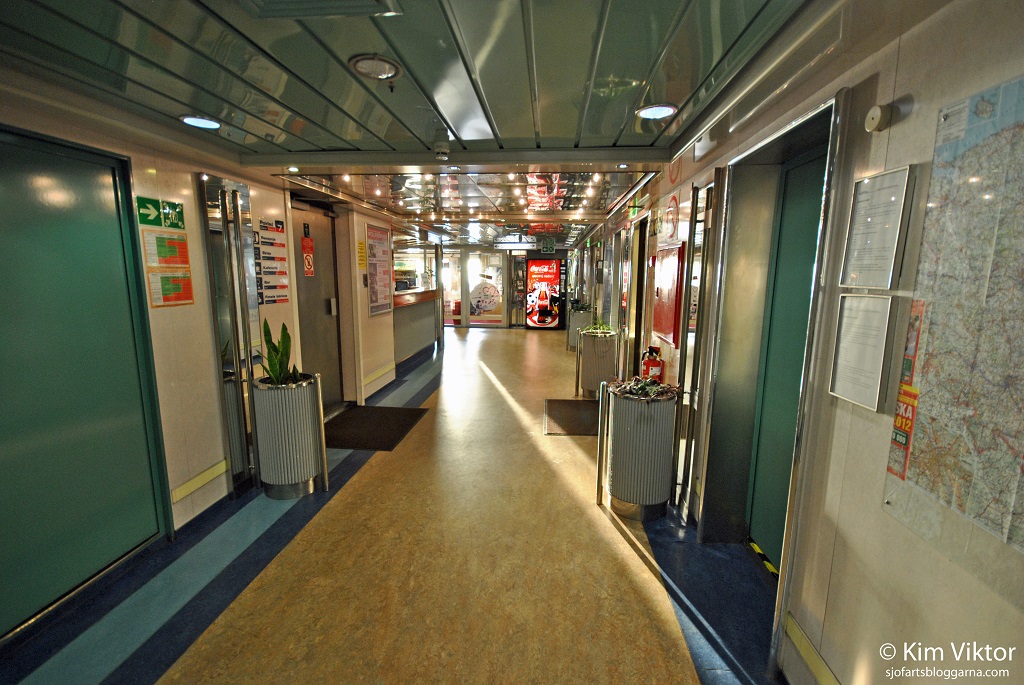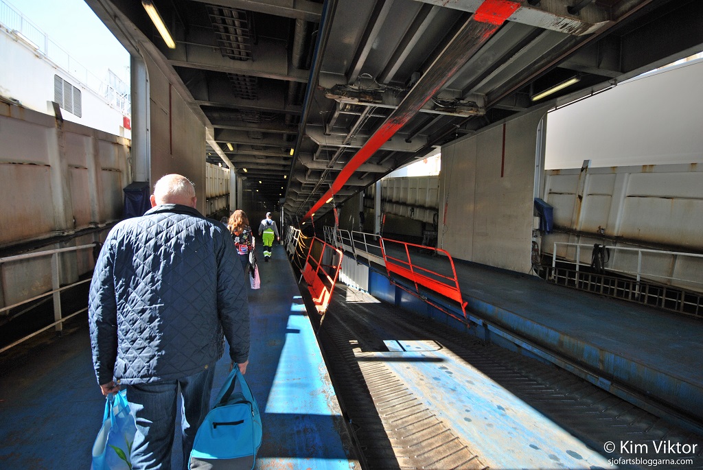 Bussen körd bara precis över rampen, sen fick vi gå igenom halva fartyget för att komma till trapphuset.