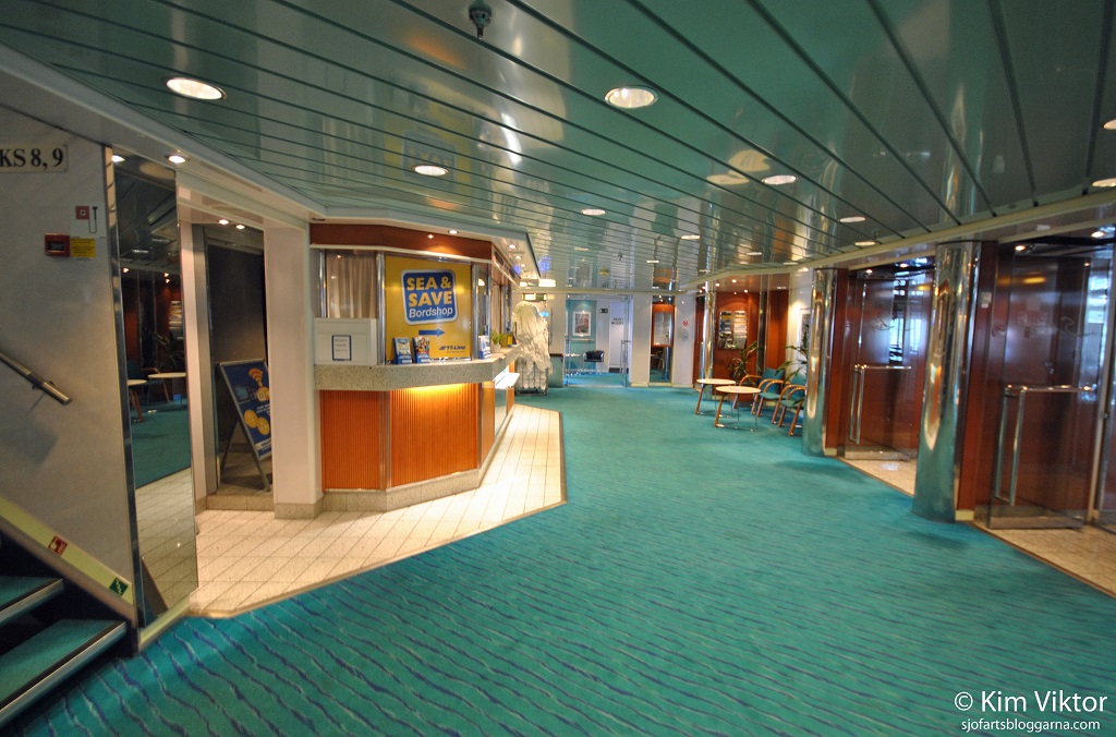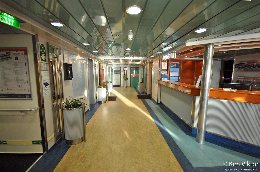 Det första man möts av är receptionen på däck 7 och förvånansvärt en i besättningen som önskar oss välkomna ombord.