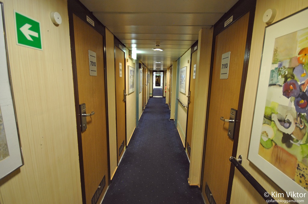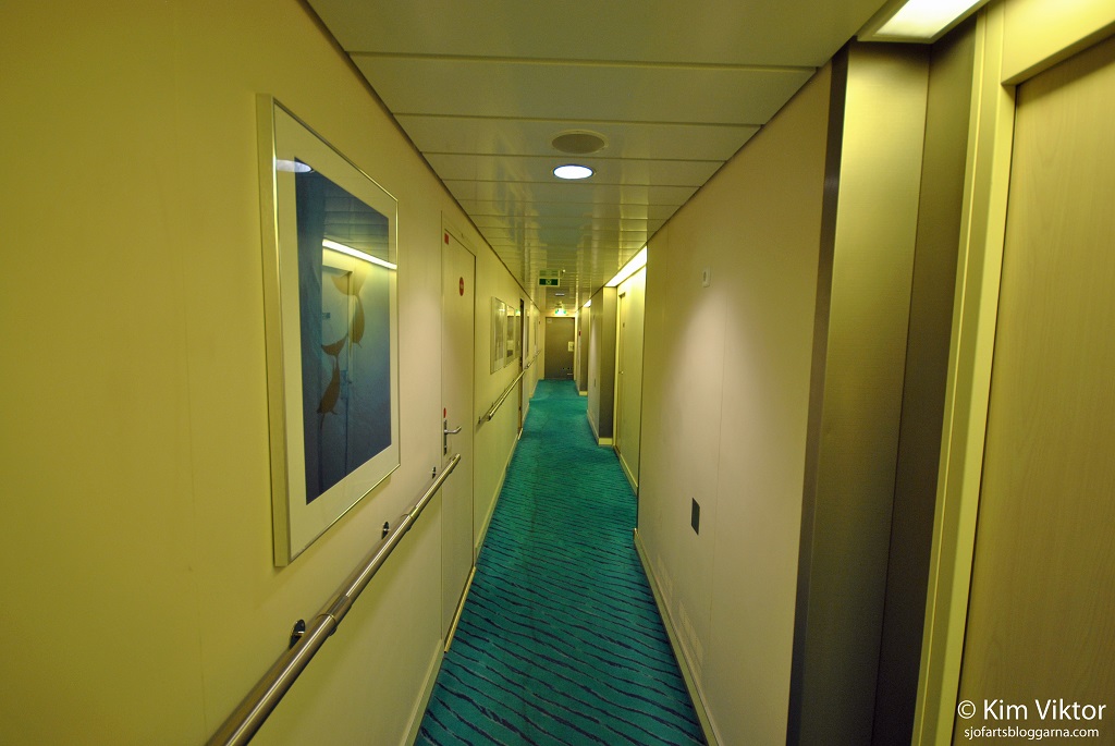 Hyttkorridor, jag verkade vara rätt så ensam om att ha hytt på denna avgång, de flesta satt nere i cafeterian hela resan.