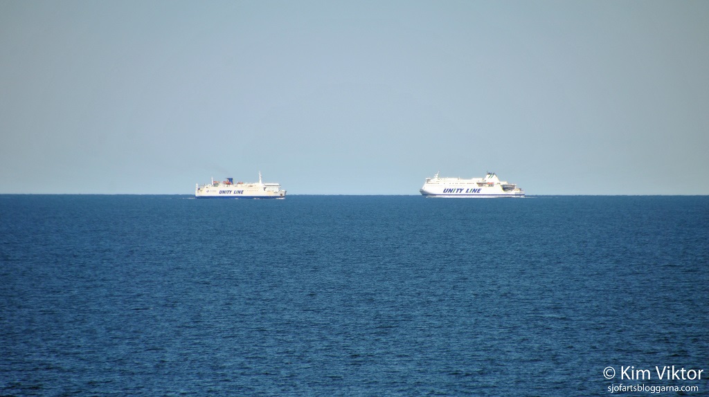 Konkurrenterna på väg in, man ser ju vem som kommer att vinna kampen. 😉 Som sagt så ska Unity Line och Polferries slås ihop inom en snar framtid, så då blir de inte längre konkurrenter.