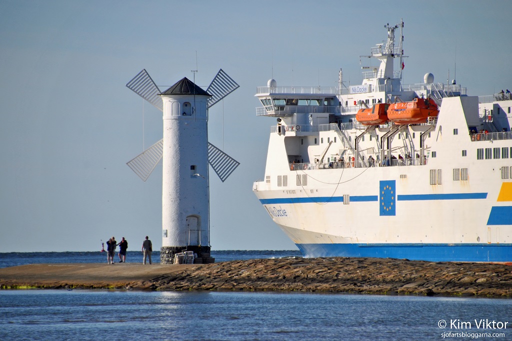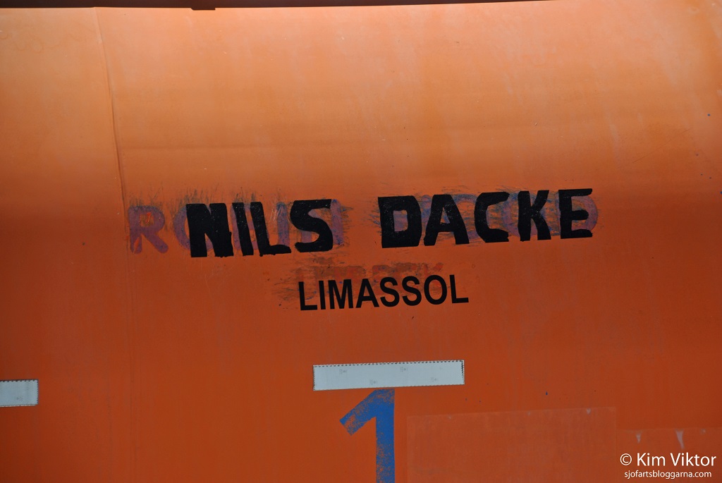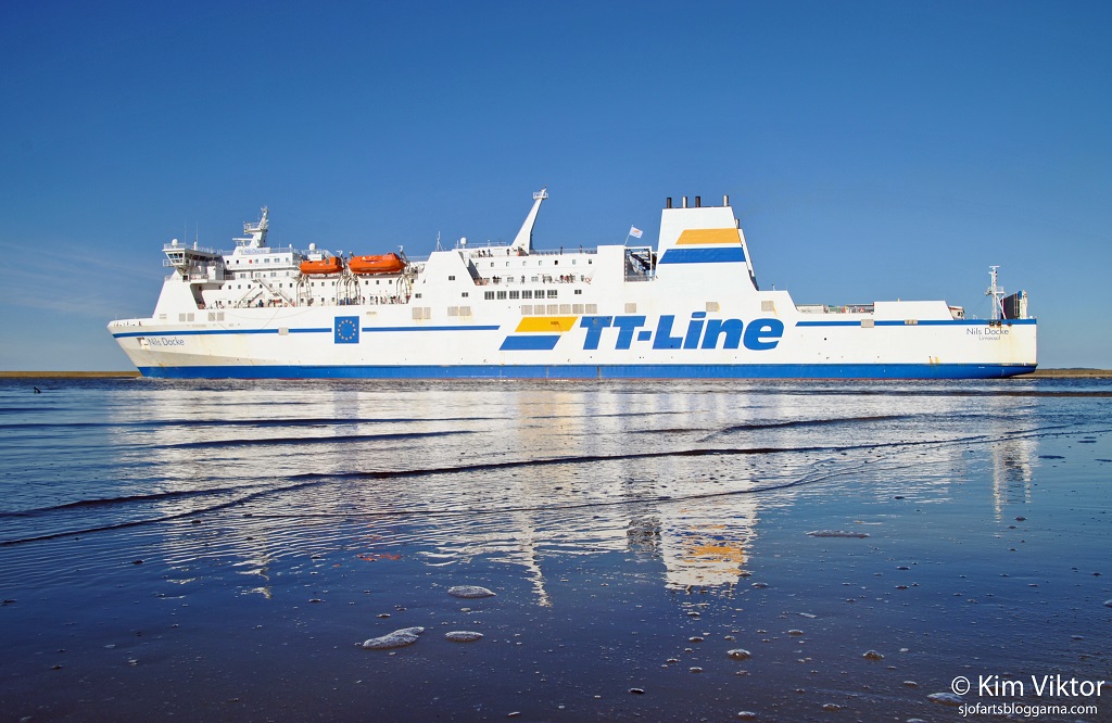 Nils Dacke har endast gått på rutten sedan december, innan dess hette hon Robin Hood (som f.d. Nils Dacke heter jag) och gick mellan Trelleborg-Travemunde. Sedan bestämde sig TT-line för att byta linje mellan systrarna eftersom den ena hade skrubbers, som skulle vara bättre att använda på rutten till Polen där färjan gör fler turer. Lite roligt att de ska envisas att ha namnet Nils Dacke på färjan, låter lite roligt när den polska besättningen ska uttala namnet (inget svenskt uttal direkt).