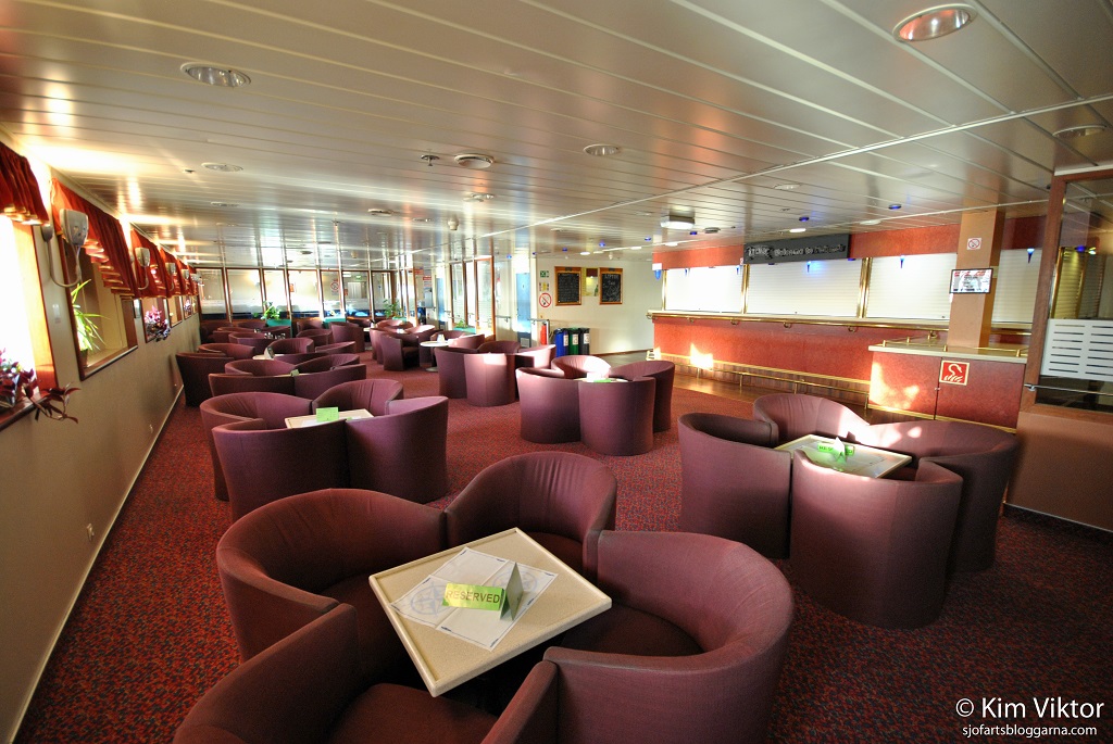 Underhållningen ombord bestod av denna ”coffee bar”. Synd att fönsterna är så små, jag kände mig lite instängd, vilket jag förstås gjorde överallt utom på soldäck.