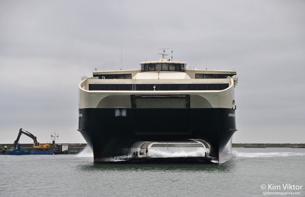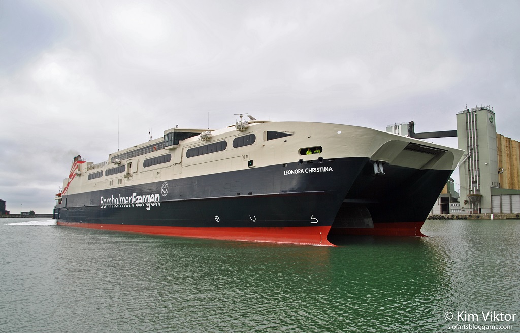 Bornholmskatamaranen Leonora Christina på ingående till Ystad.