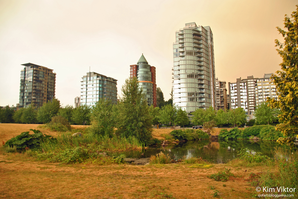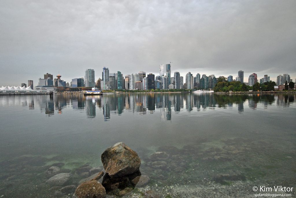 Nästa morgon blev åter tidig. Det var en lugn morgon och Vancouvers skyline speglade sig vackert i vattnet.