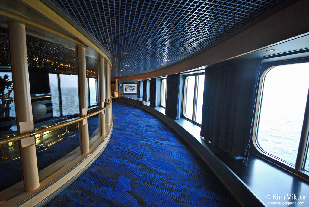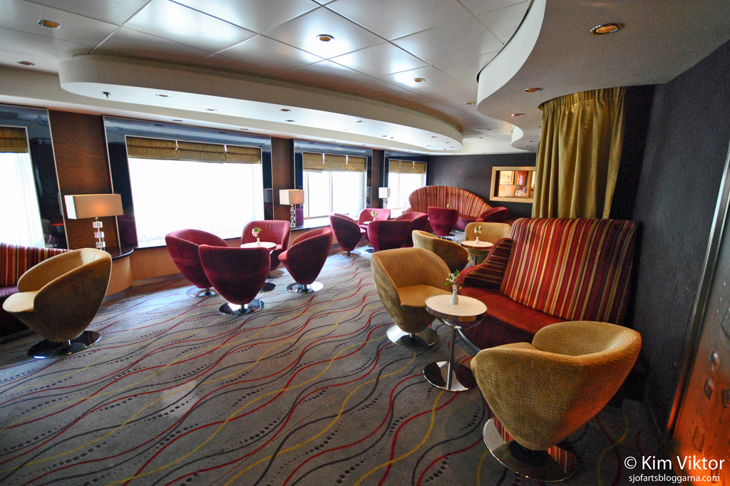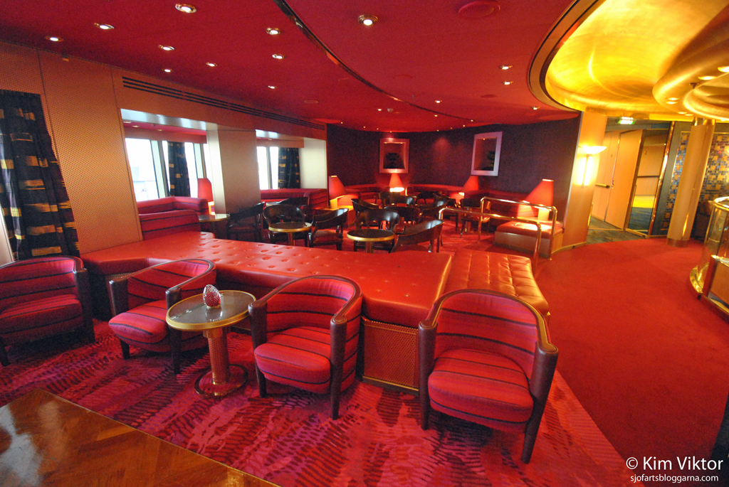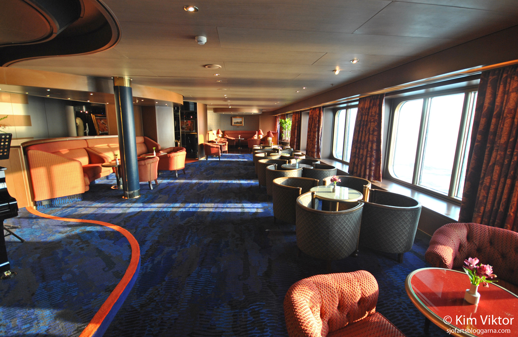 Vi fortsätter på däck 2 med Explorer’s lounge, ett populärt ställe att ta en drink innan middagen.