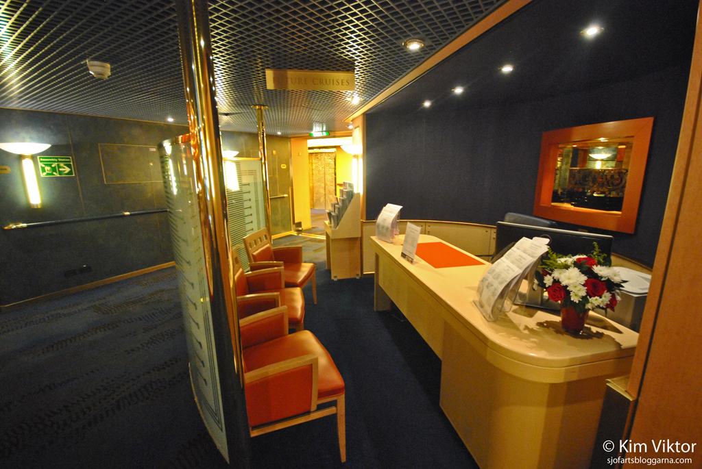Längst ner i atriumet på däck 1 hittar man receptionen och utflyktsdisken