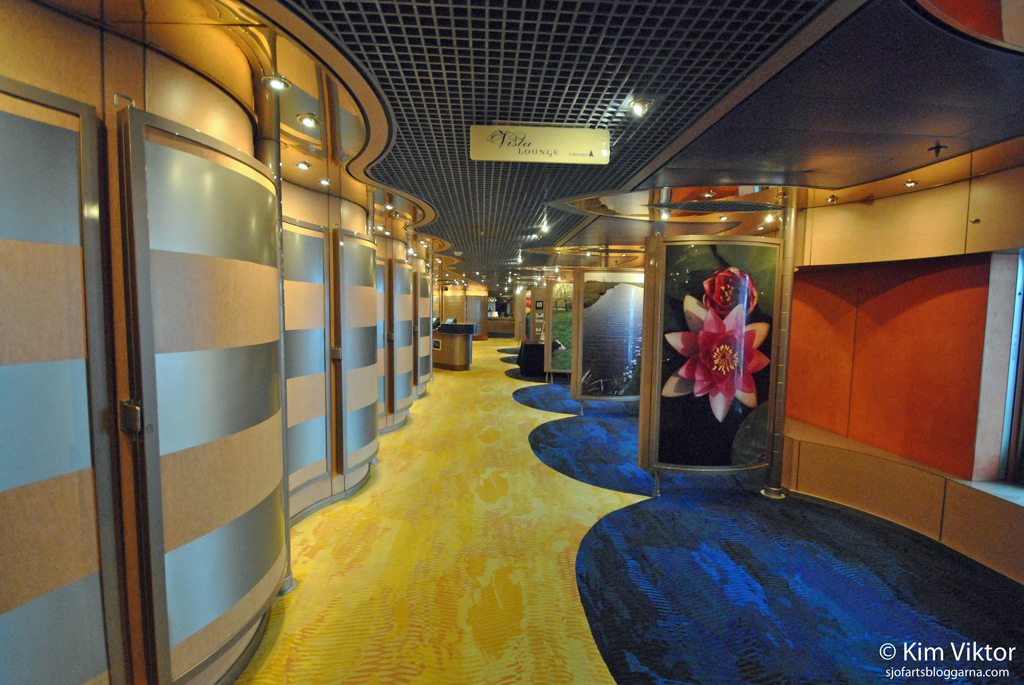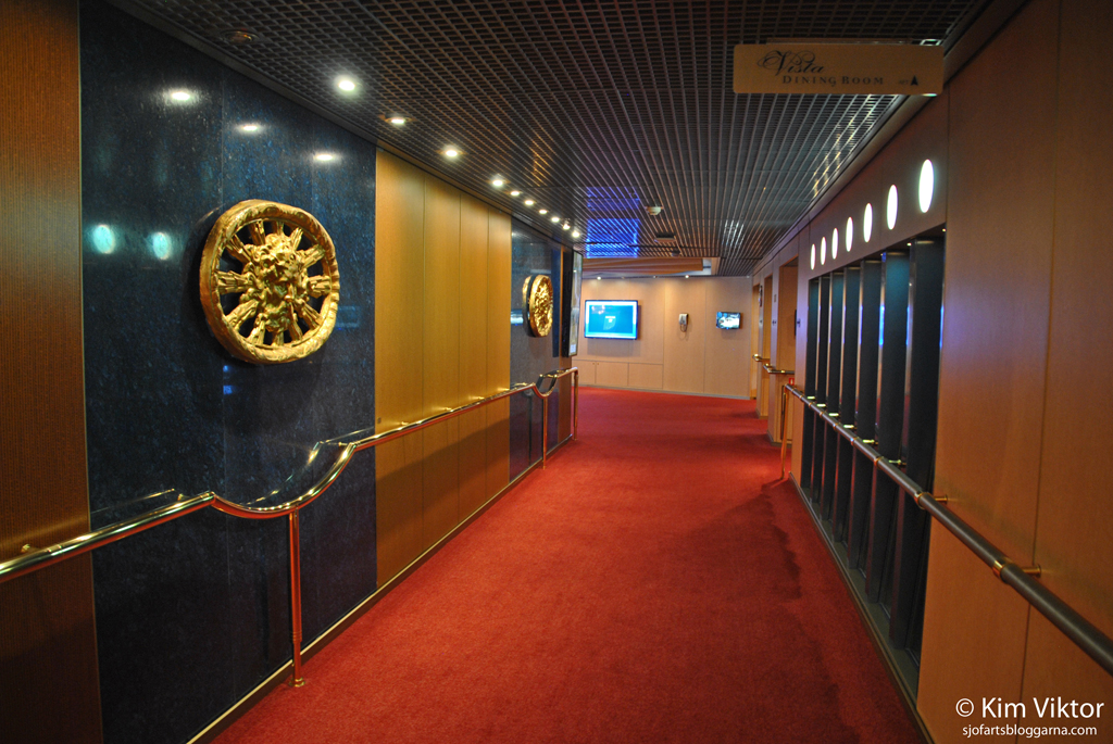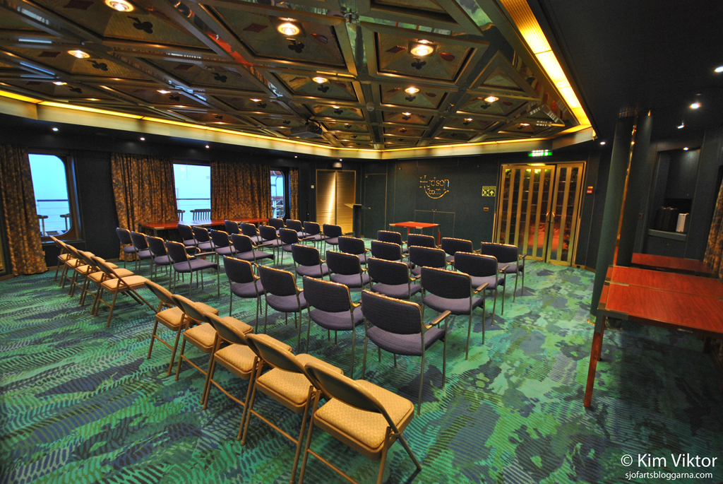 Då har vi kommit upp på däck 3. Ett av mötesrummen ombord, här var det både kristen och judisk gudstjänst.
