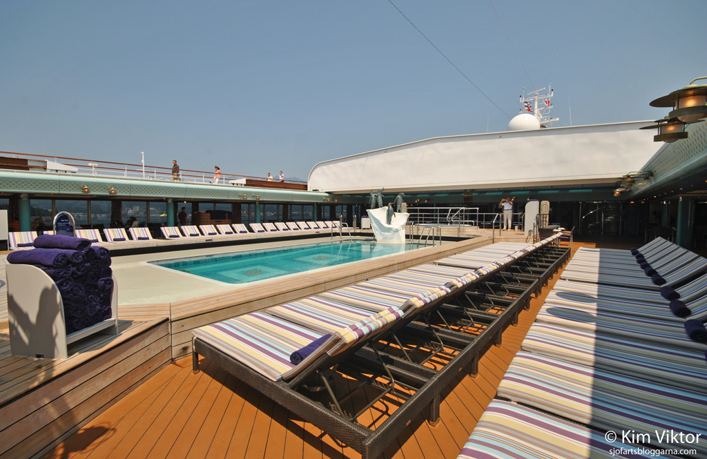 Dags att gå ut och njuta av det fina vädret. Pooltaket var öppet (en av få gånger under resan), men ännu hade folk inte hittat hit.