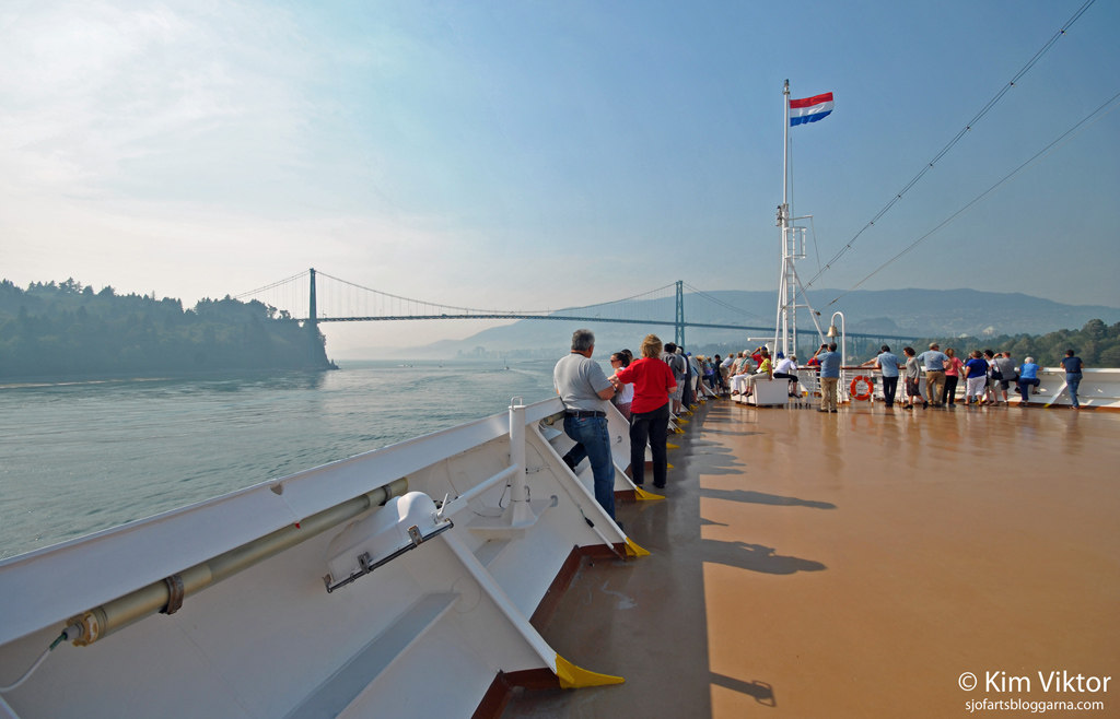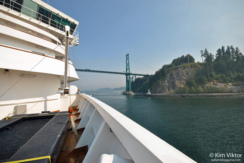 Vår tur att passera under Lion Gate-bron, tyvärr var det ingen som fotade oss där uppifrån.