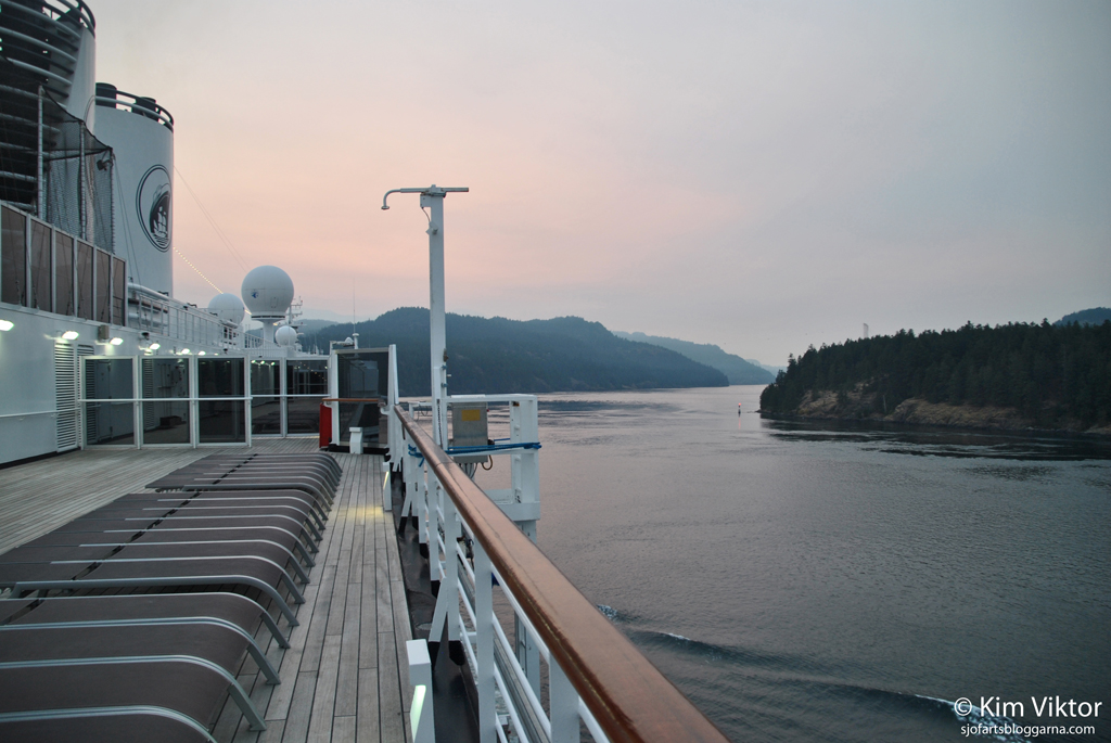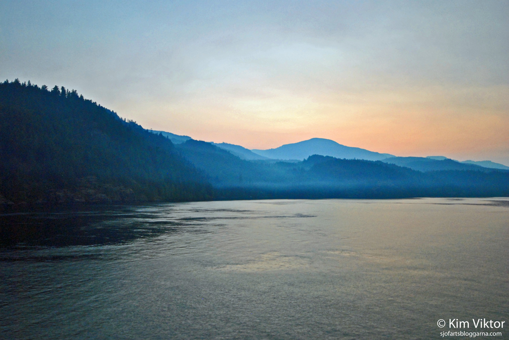 Dimman ligger lågt vid bergen och mörkret infinner sig, vi går och lägger oss för att njuta av en ny vacker dag till sjöss i ”Inside passage”.