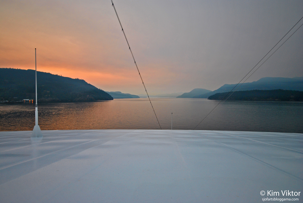 Vi åker in i Discovery passage med Vancouver Island på babordssida.