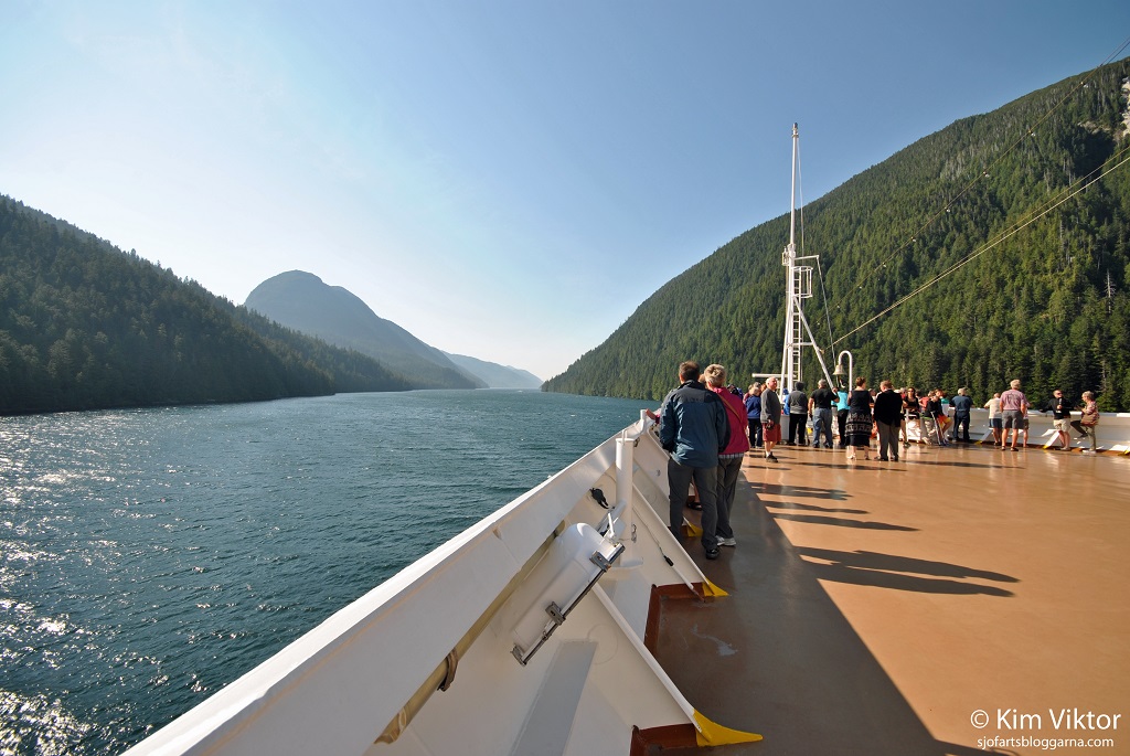 Vi närmar oss dagens höjdpunkt Grenville Channel, som är en del av ”inside passage”, men långt ifrån alla kryssningsfartyg går så här långt inomskärs.