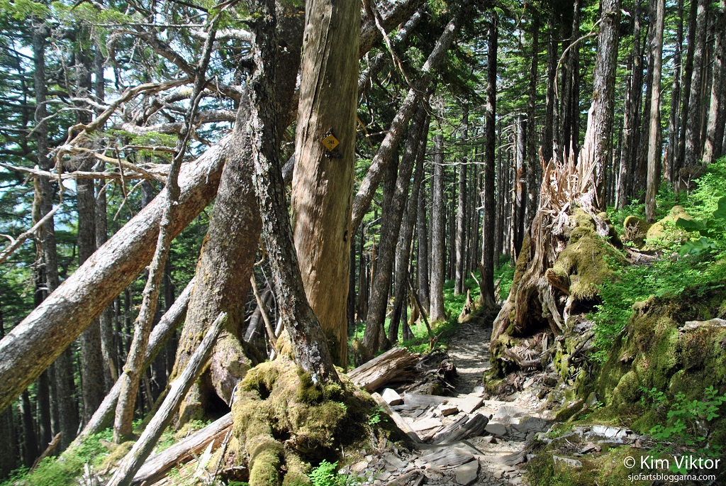 Vandringen går genom fin barrskog upp till en höjd på drygt 1000 meter.