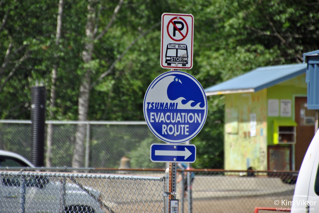 Vi befinner oss i ett område där jordskrev förekommer, därför måste även evakueringsplaner för tsunamin finnas.