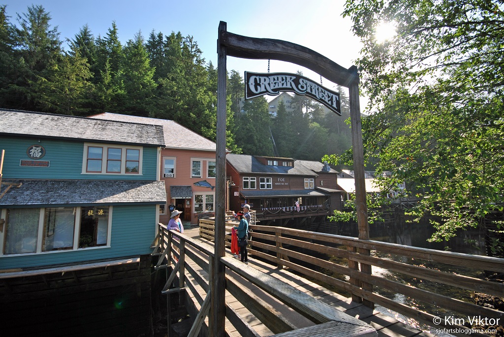 Den första dagen på kryssningen tillbringades till havs i ”Inside passage”. Vi gick igenom ett trångt sund på vår färd upp mot Ketchikan. Vårt första stopp var alltså Ketchikan, en trevlig stad, med många historiska inslag.