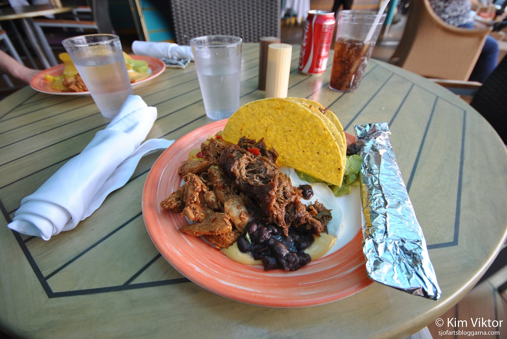 När vi väl hade kommit ombord igen så hade lunchen avslutats i lido och vi fick äta i poolgrillen, där de hade tacobuffé.