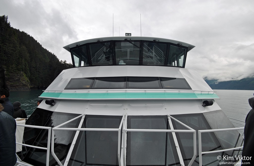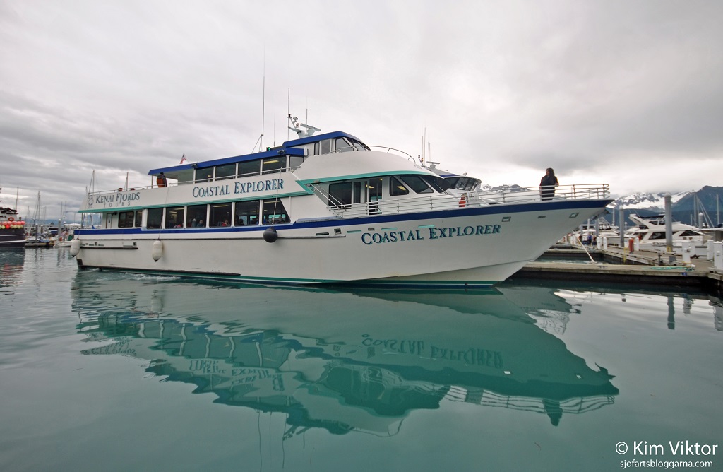 Ett av rederiets äldre fartyg, Costal Explorer, som ger sig ut på en tur till Fox Island i Kenai Fjords nationalpark.