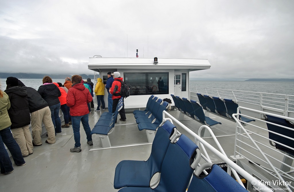 Efter några timmar vid kaj lägger Tustumena åter ut på väg till öarna lägre ut, tillsammans med sillgrisslorna.