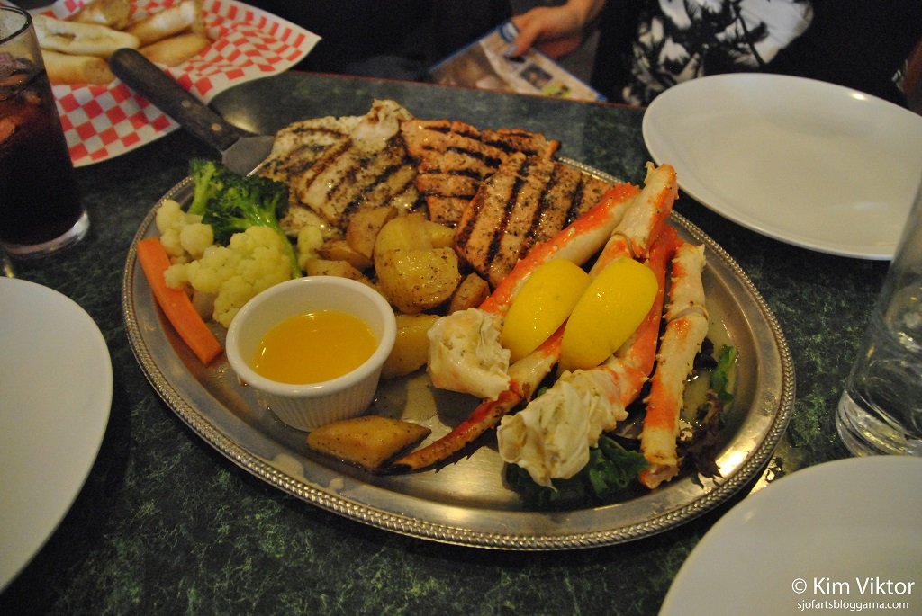 Man kan ju inte åka till Alaska utan att äta riktig Alaskamat som kungskrabba, hälleflundra och lax, mums!