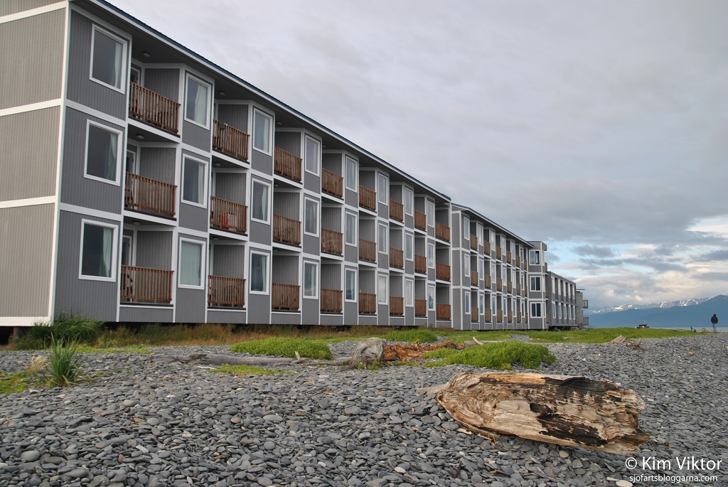 Vi bodde längst ut på sandrevlen Homer spit, på hotellet med det passande namnet Land’s end.