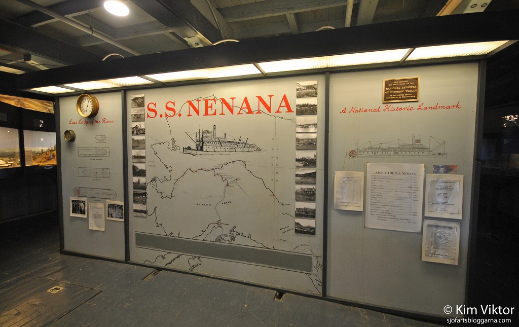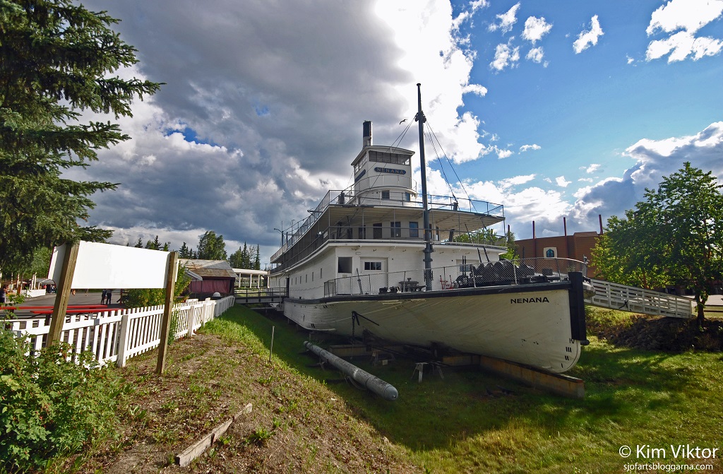Vi skulle ta flyget hem från Fairbanks, men vi hade några timmar att spendera i stan innan vi tog flyget klockan 01.30 på natten. Vi gick in i Pioneer park, som är ett slags friluftsmuseum. På muséet ligger ångpaddlaren Nenana uppe på land.