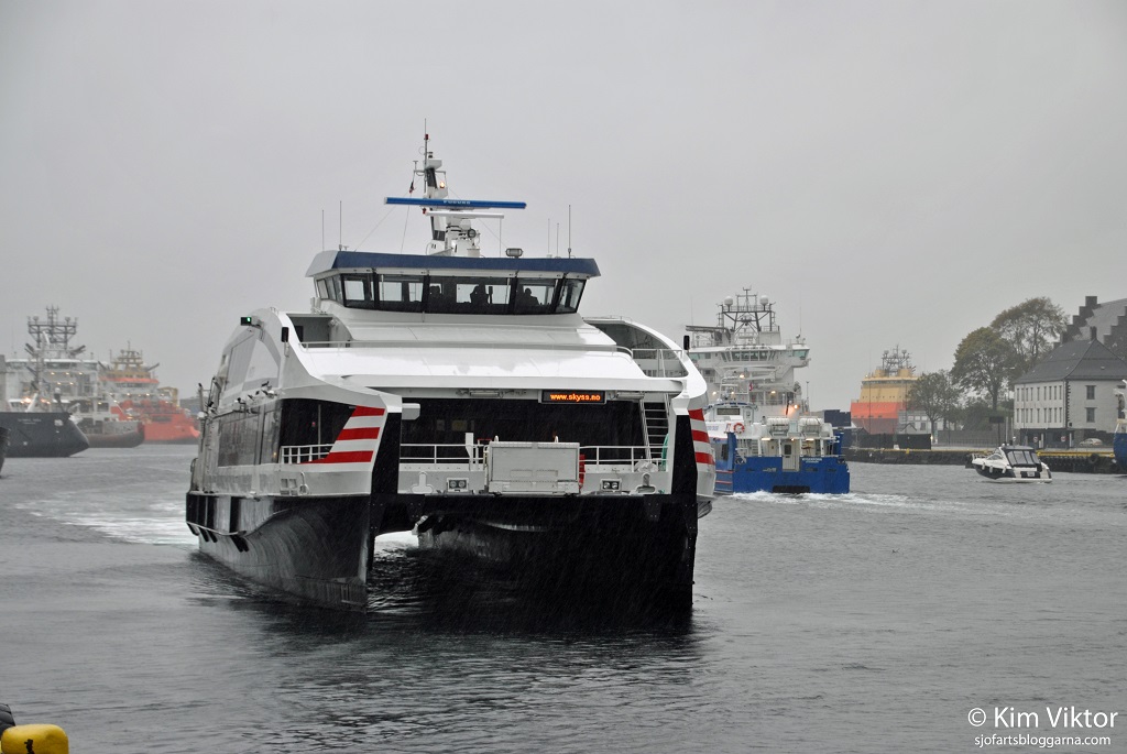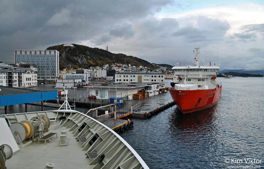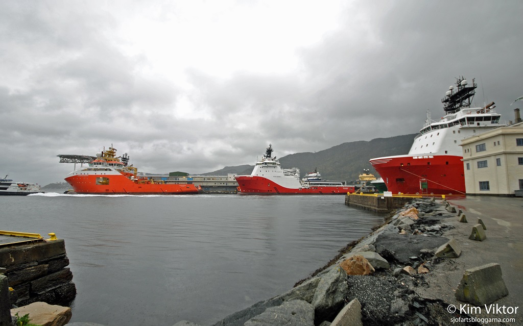 I denna tid på året har kryssningsfartygen ersatts av offshorefartyg ute vid Skolten.