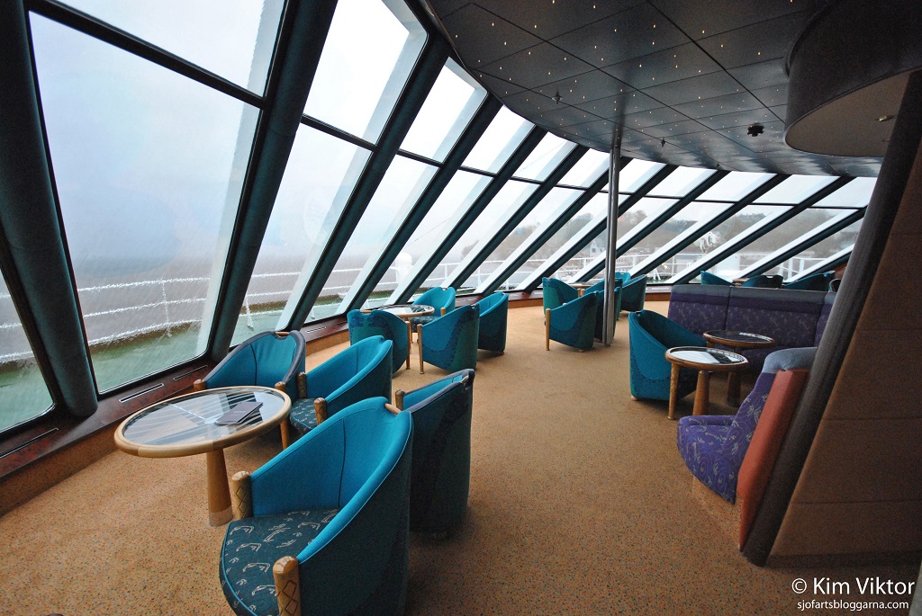 Observationsloungen med bar, här kommer det framöver att finnas ett café, rätt så förståeligt, inget större drag i baren på denna resa.