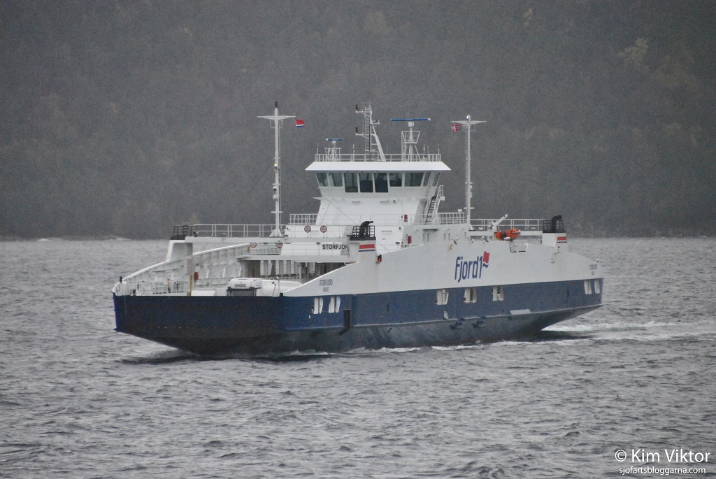 Många bilfärjor sågs under resan, här är Storfjord som tillsammans med systern Hjørundfjord, går på en del av E39.