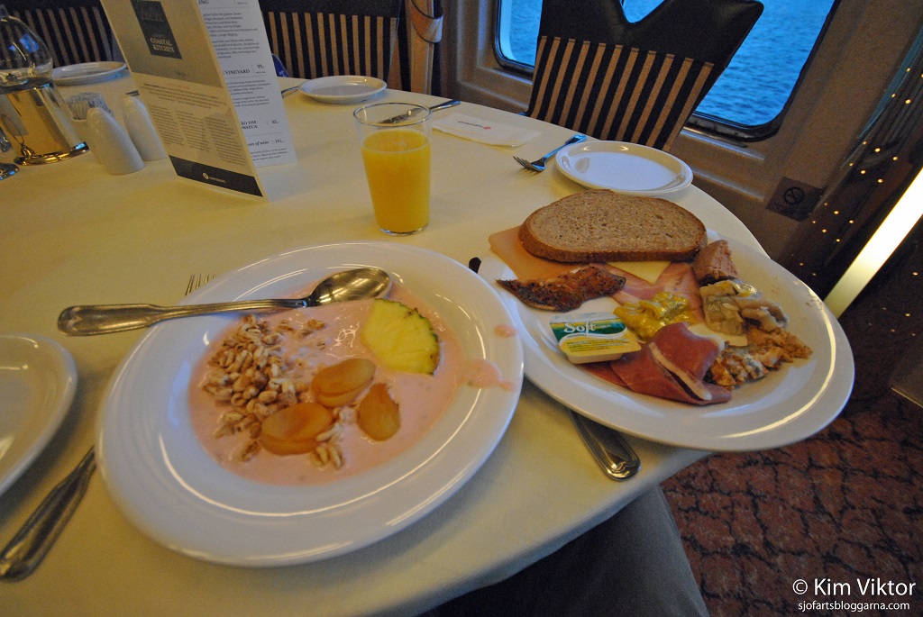 Jag passade på att ta en tidig middag, då vi skulle ligga i Ålesund under kvällen. I cafeterian tog jag lammstek för 149 NOK, smakade alldeles utmärkt!