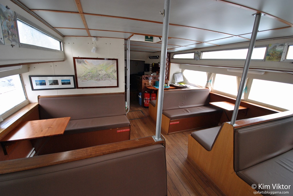 På båten finns en försalong. Hon kan ta maximalt 38 passagerare, alltså kan det bli rätt så många rundor.