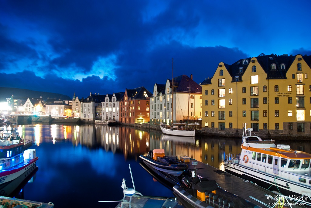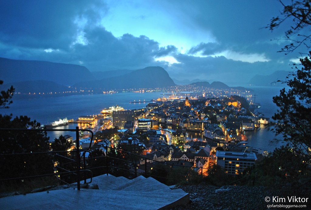 När vi väl var framme i Ålesund, trotsade jag mörkret och vinden och begav mig upp för 481 trappsteg upp på berget Aksla.