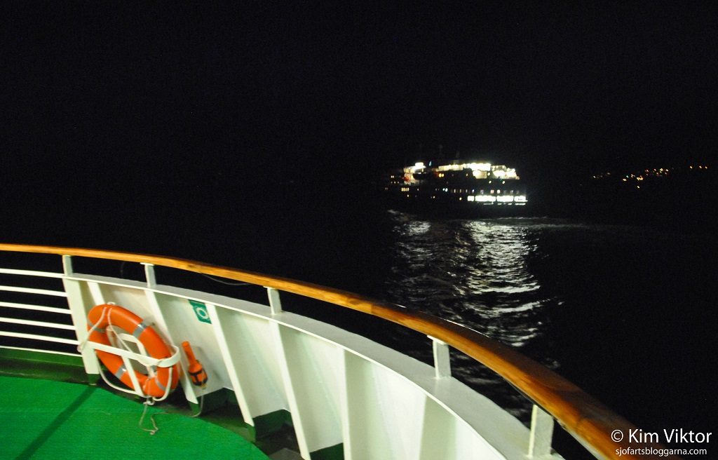 Under kvällen fortsatte resan norröver och utanför Molde mötte vi Hurtigrutens Richard With, här hälsade ”hon” på Polarlys.