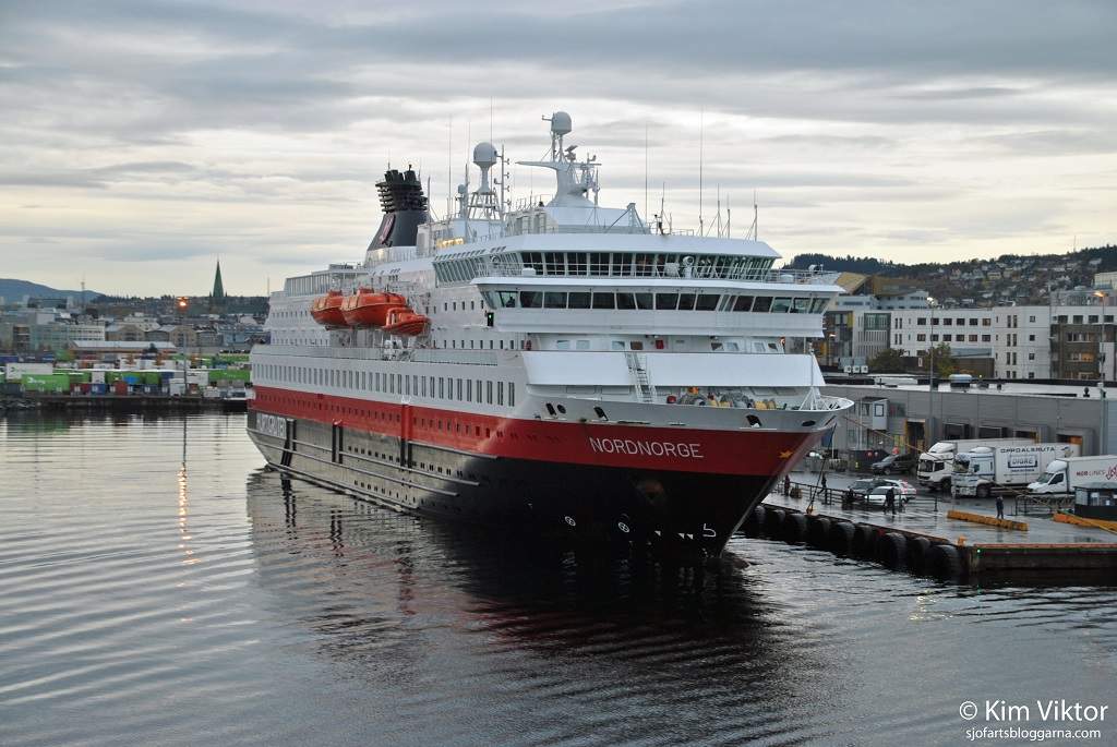 Nordnorge låg redan till kaj. Jag hade inte uppfattat vilken tid man skulle lämna hytten, så de ropade ut i högtalaren att alla som skulle lämna fartyget i Trondheim skulle ha lämnat hytten för 30 minuter sedan….
