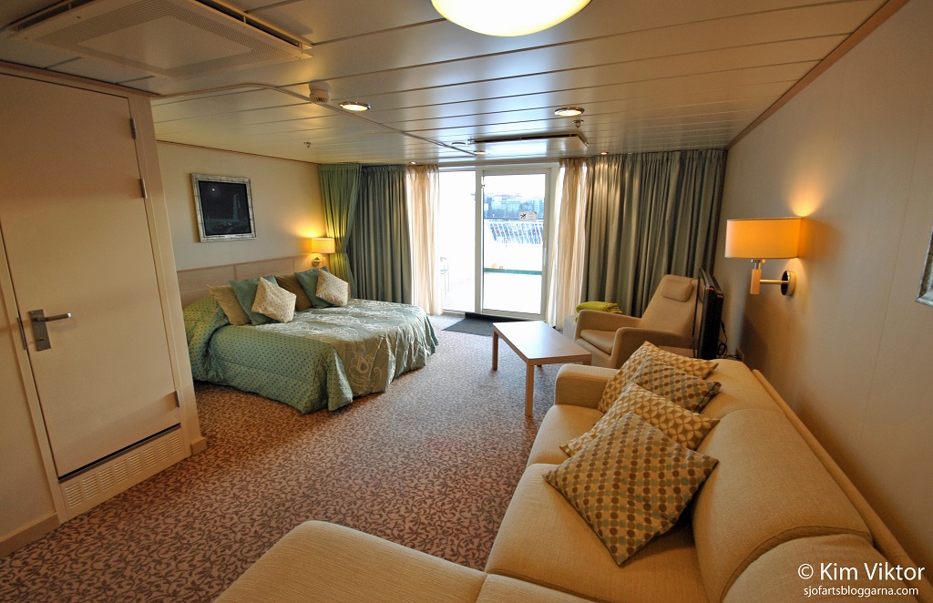 Balkongen var den största som jag någonsin har haft på ett fartyg. Det som är bra med hörnhytterna är att man har betydligt bättre utsikt än hytterna i mitten.