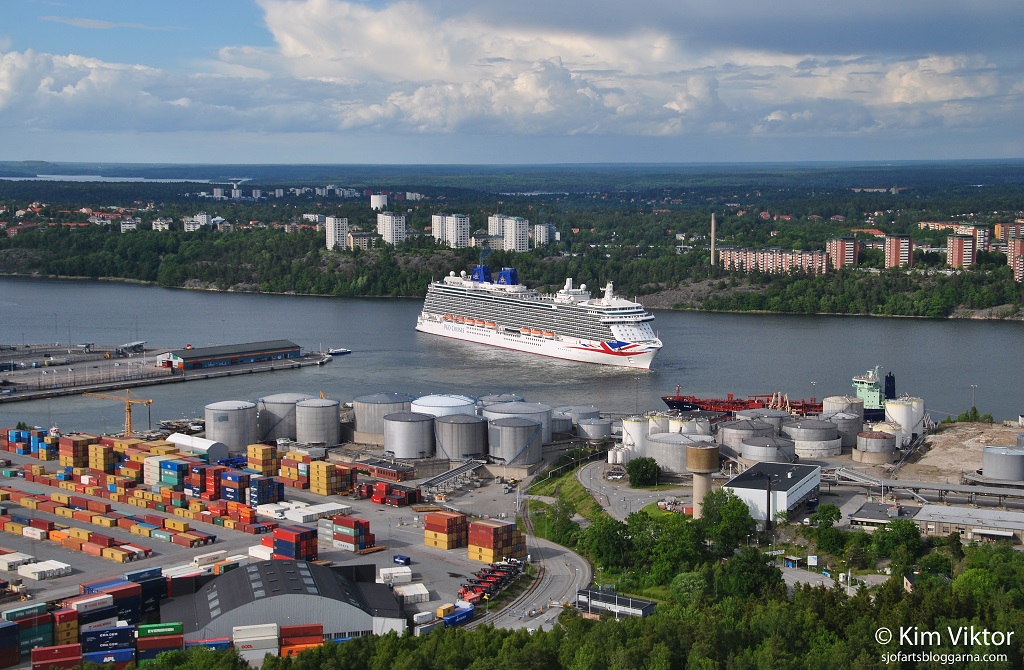 Det var ett tag sen jag skrev här, p.g.a. flytt och tentor. Jag har många reportage i lager ni kan se fram emot. I eftermiddags åkte jag upp i Kaknästornet för att fota P&Os Britannia andra anlöp i Stockholm. (Första gången 2015). Hon är P&Os klart största fartyg och utgår på kryssningar från Southampton under sommaren och Karibien i vinter. Jag hade tur med vädret, då det kom en åskskur precis när jag åkte ner. Kaknästornet är ett perfekt ställe för shipspotting, framför allt för fartygen från Frihamnen/Värtahamnen. Fråga efter nyckeln till fotoluckorna i cafeterian, så slipper ni få med stängslet i bilden.