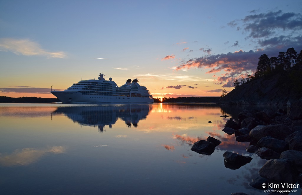 Några minuter efter klockan fyra på morgonen kom Seabourn Quest förbi mitt landställe ute på Vindö. Fartyg upp till 245 meter tar oftast Sandhamnsleden när de går in till Stockholm. Solnedgångar i all ära, men gryningar är klart underskattade.