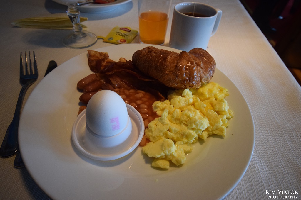 Frukosten var internationell med ett traditionellt utbud plus lite skandinaviska produkter som sill och lax. Överlag smakade det bra, men jag saknade omelett och andra rätter man kan få på de riktiga kryssningsfartygen.