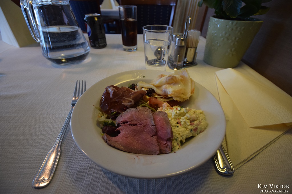 Lunchen var i form av buffé. De kalla rätterna var i stort sett samma till varje lunch, med bl.a. en fantastiskt god rökt torsk. Jag hade inte tackat nej till ännu fler rätter från havet.